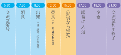 利用者様1人1人に合った個別の援助を行います。 相談・入浴・排せつ・食事の介助や健康管理・金銭管理の支援、ご家族・就労施設との連絡調整。 その他日常生活に必要な支援を行い、孤立の防止、生活への不安の軽減に努め、利用者様が安心して地域生活を送る日常の場を提供します。